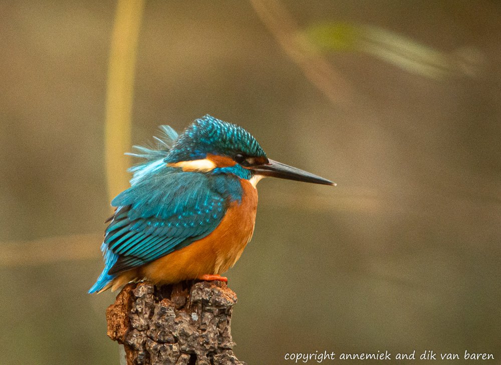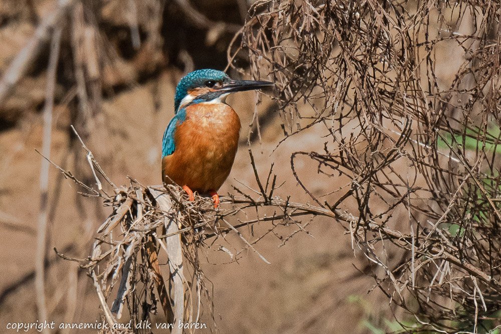 We show a majority of pictures of Kingfisher (IJsvogel) because this bird is active in Holland all year around and breeding March through September but also local in most European and North African countries near the sea and near fresh water. For us this is a good representative bird, rather colourful and active, alyhough often shy and or difficult to find and photograph.
