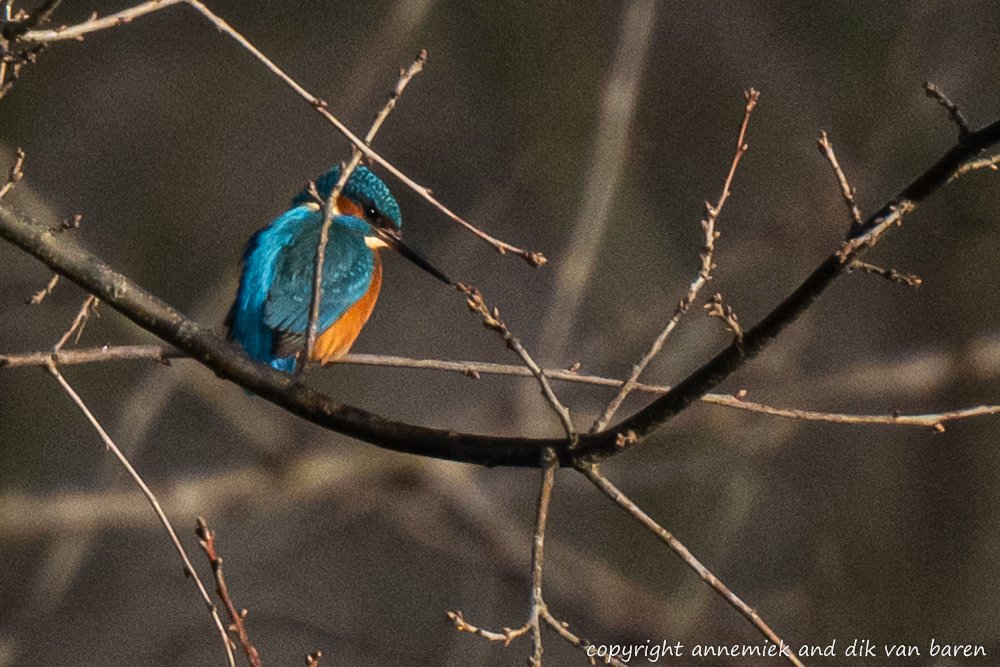 Example 9. Holland crop 3000 x 2000 Kingfisher (IJsvogel) 28 meter cloudy tripod Z50 Nikkor 500mm f/5.6E PF VR TC-20E III equivalent 1500mm exceptionally clean atmosphere substantial camouflage. Compared to: GBS 25cm 10m 450mm equivalent: