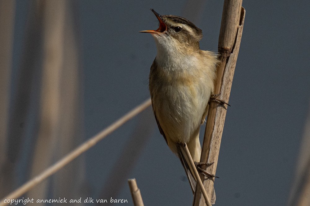 Example 4. Holland Reed Warbler (Rietzanger) 12 meters sun. Tripod Z50 Nikkor 500mm f/5.6E PF VR TC-20E III equivalent 1500mm standard camouflage, crop 3000 x 2000 pixels. Compared to: GBS 25cm 10m cloudy clean air 450mm equivalent =>